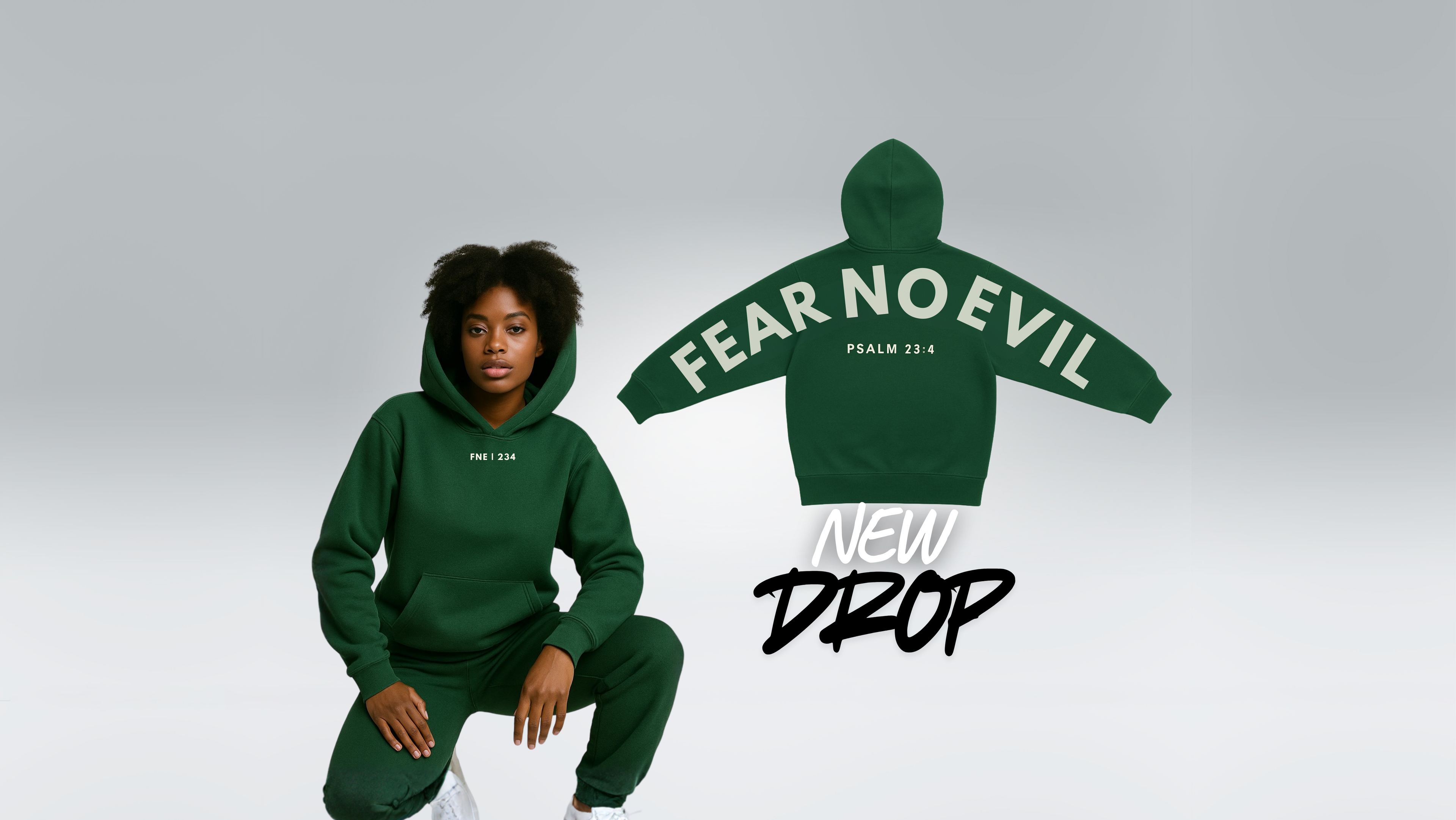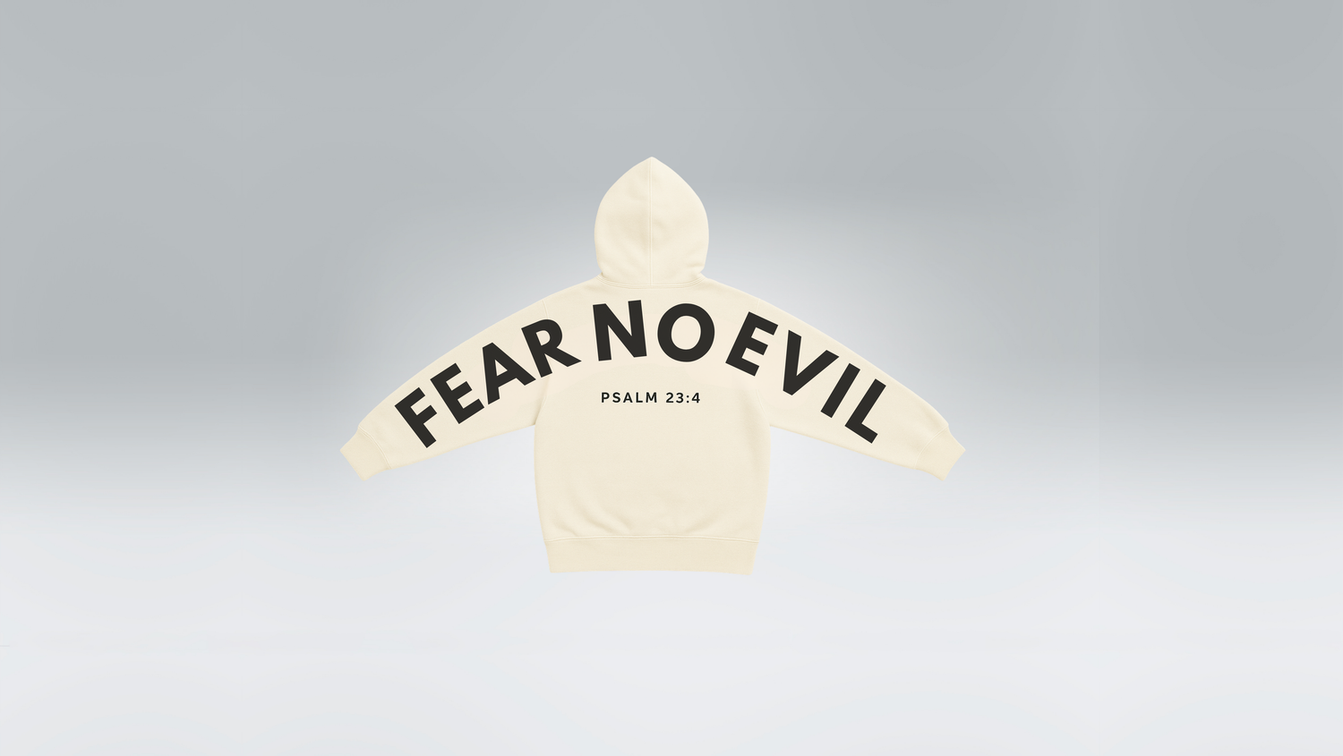 Oversized sleeve-to-sleeve back print inspired by Psalm 23:4, built for believers who walk through dark seasons with their head up.